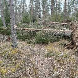 Tyvärr måste vi invänta, tills markägaren har tagit reda på stormfällde träd.